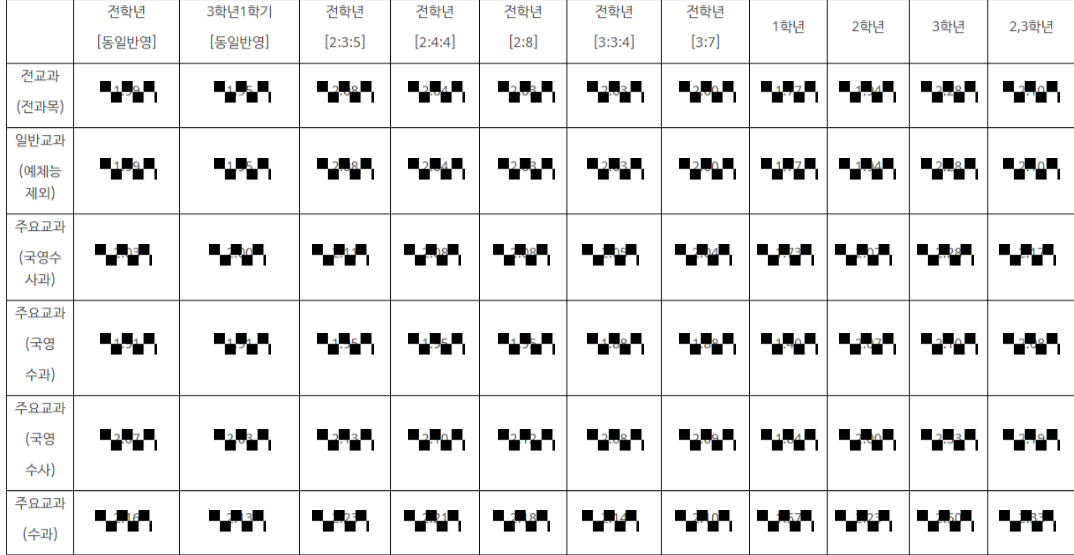 ¶ 학생의 내신 분석 (개인정보로 성적은 블라인드 처리되었습니다.)