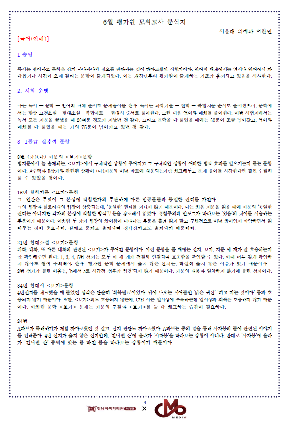 [📝의대생 & 서울대생 6월 평가원 분석지 ]