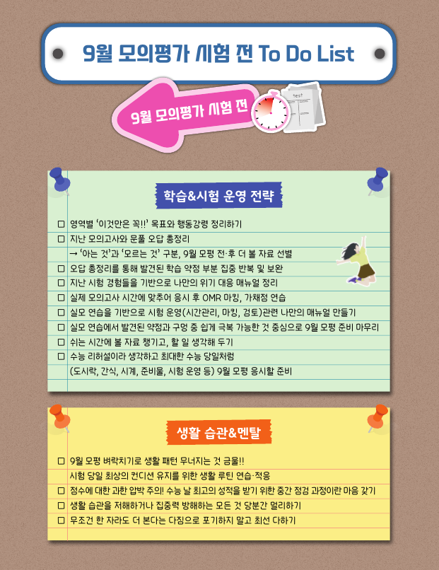 지켜야 할 것들이 있다면 지금 정리하여 9월 모평에서 실천해 본 뒤 시험 후 과정을 복기하면서